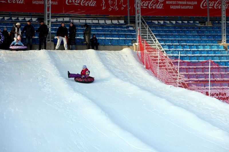 Сурагчдын өвлийн амралт, шинэ жилийн баярыг тохиолдуулан нийслэлийн 9 дүүрэгт мөсөн гулгуурын талбай бүхий нийтийн эзэмшлийн орчныг тохижуулах ажлыг үе шаттайгаар хэрэгжүүлж байгаа бөгөөд энэ хүрээнд Төв цэнгэлдэх хүрээлэнд мөсөн гулгуурын талбай, чарганы зам, иргэд амрах тохилог орчныг бүрдүүлэн үйл ажиллагаа явуулж байна.Уг хотхон нь иж бүрэн гэрэлтүүлэгтэйгээс гадна тэшүүр, чарганы түрээсийн үйлчилгээ, халуун ундаа, хөнгөн зуушаар үйлчлэх цэгүүдийг байршуулах зэргээр жишиг түвшинд тохижуулагдсан бөгөөд иргэд, хүүхэд багачуудад өвлийн улиралд чөлөөт цагаа зөв боловсон өнгөрүүлэх боломжийг бүрдүүлжээ.